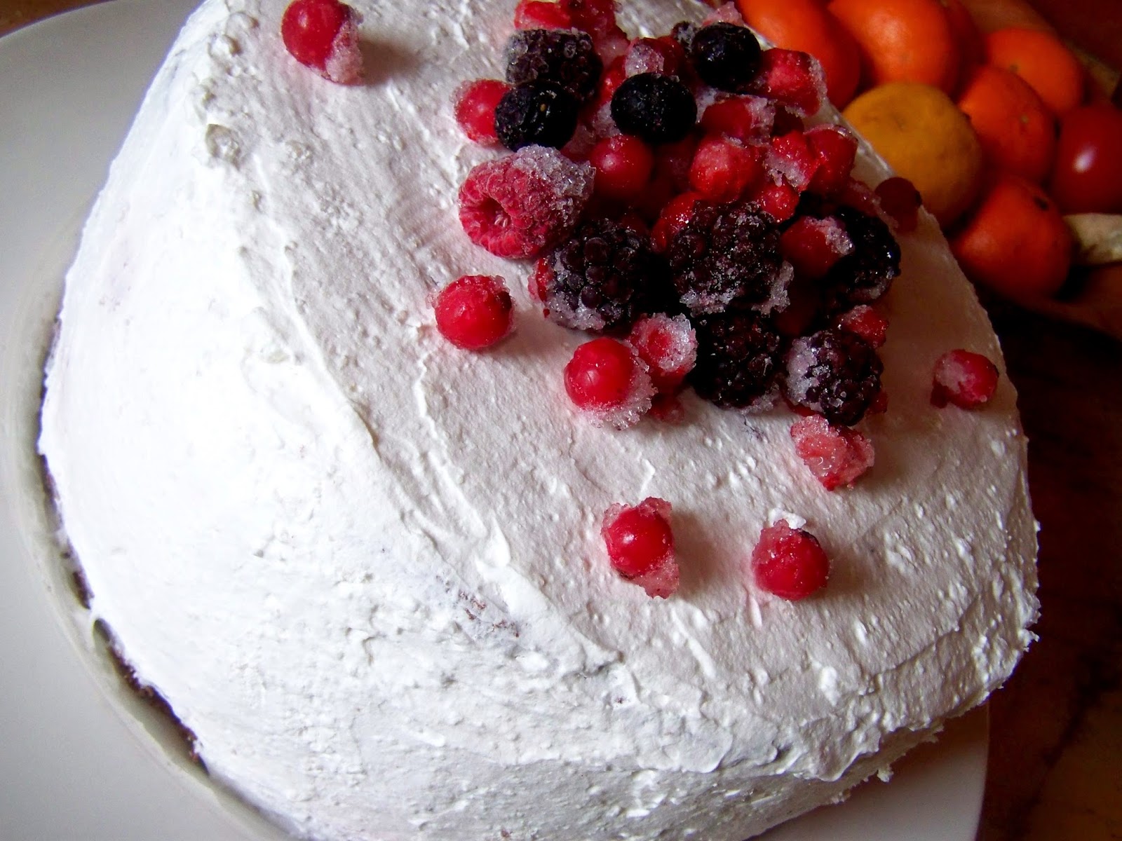 Lányom és nagyfiam szülinapját ünnepeltük, Csenger 11, Bíborkám 7 éves nagylány lett. :) A fiam kedvence a fekete erdő torta, már sütöttem párszor, de nem tudja megunni ezért most is ezt kért. Az eredeti recepthez képest annyit változtattam rajta, hogy a felvert habtejszínből félretettem 5 evőkanálnyit, később ezzel vontam be a tortát. A maradékhoz adtam másfél dl sűrű meggyjoghurtot és belekevertem egy zacskó Dr. Oetker zselatinport. Fóliával kibélelt kapcsos tortaformát használtam, úgy töltöttem meg a kétféle krémmel a lapokat. Így biztos nem folyik ki krém a lapok közül. Hűtőben pár óráig pihent, szilárdult, majd levettem a formát és az egészet bevontam keményre vert habtejszínnel. Tálalás előtt a megszórtam fagyasztott erdei gyümölcs keverékkel.