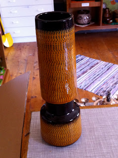 Den här fina PO Ström vasen från Alsterfors hittade jag på Myrorna i Umeå, jo man kan fynda där ibland! Aortapumpen gick på högvarv när jag såg vad som gömde sig på en hylla! Hipp hipp hurra, vasen blev min för ringa 120 kr!
