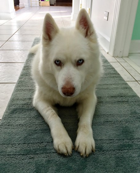 As one can see, Issi is looking a bit hairier than usual (careful choice of word, so as not to insult the little lady). It has been a long winter, a big thaw, melt and now we are getting lots of rain….which means mud, mud, mud and more mud. White and mud mixed with rain and dirt = a grayish hue of hairy beauty. Plus, an extra thick winter coat and a few extra under coats = a plumper ball of pooch. What does this all mean? A trip to the stylist…..this Monday!!!!