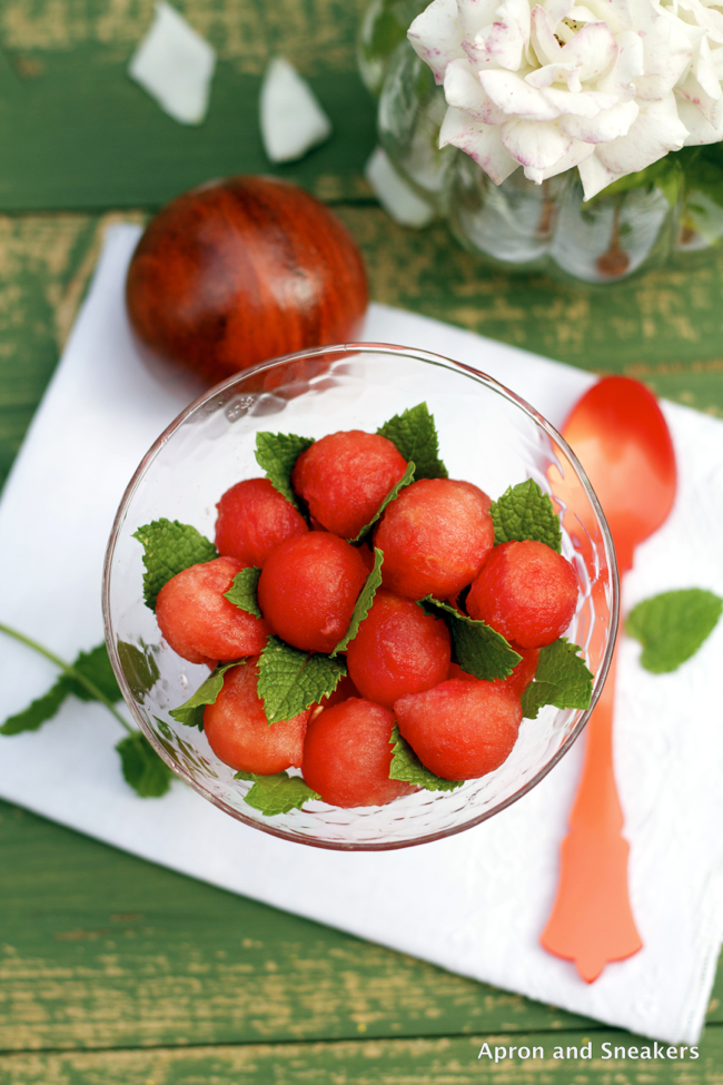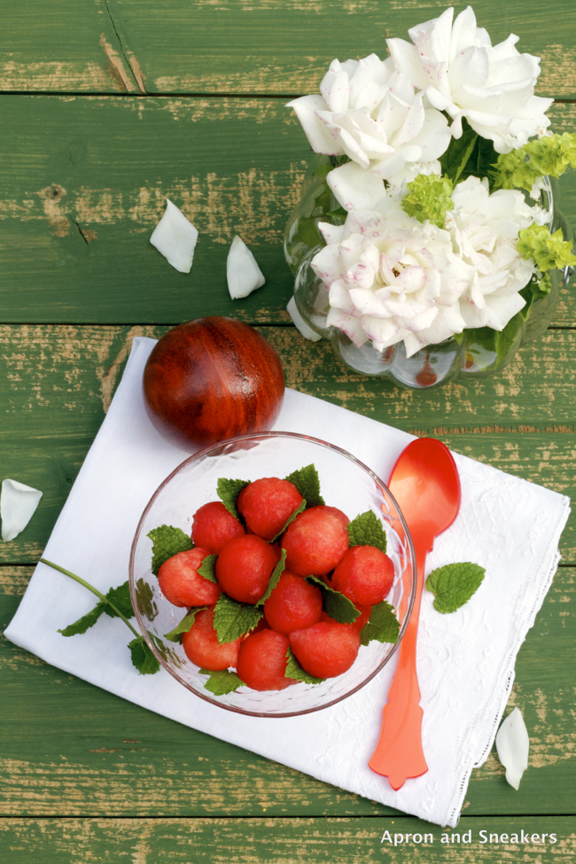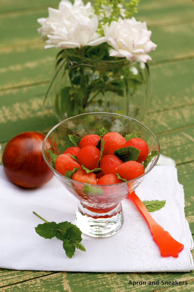 Adapted from Una Finestra di Fronte's Perle di Anguria Marinate (recipe in Italian)Ingredients: