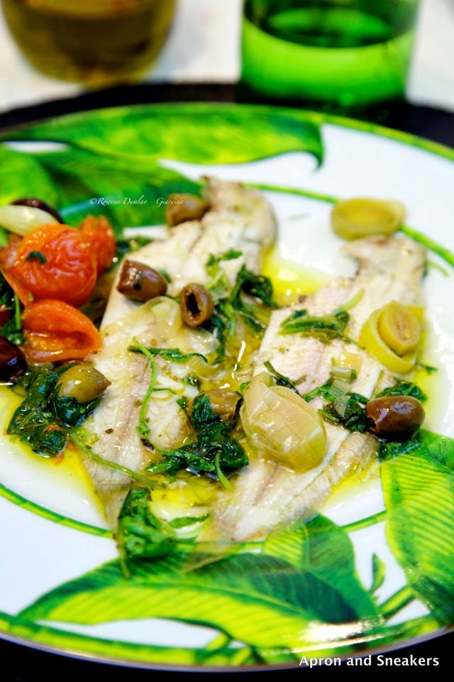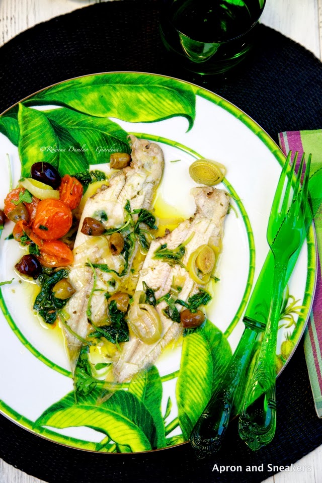 White wine is good for your sole. How do you cook your sole? I cook them in a number of ways but there are only two that I hang on to because as luck touched my kitchen, both my children love sole. One loves it covered with breadcrumbs and lightly fried while the other one likes it like this but with my Mediterranean version (plaice & sole are similar kinds of fish). It's not the easiest task to convince the kiddos to eat their fish but this recipe is an exception.