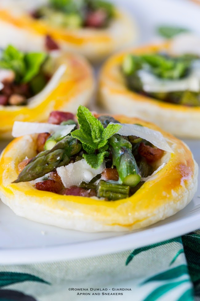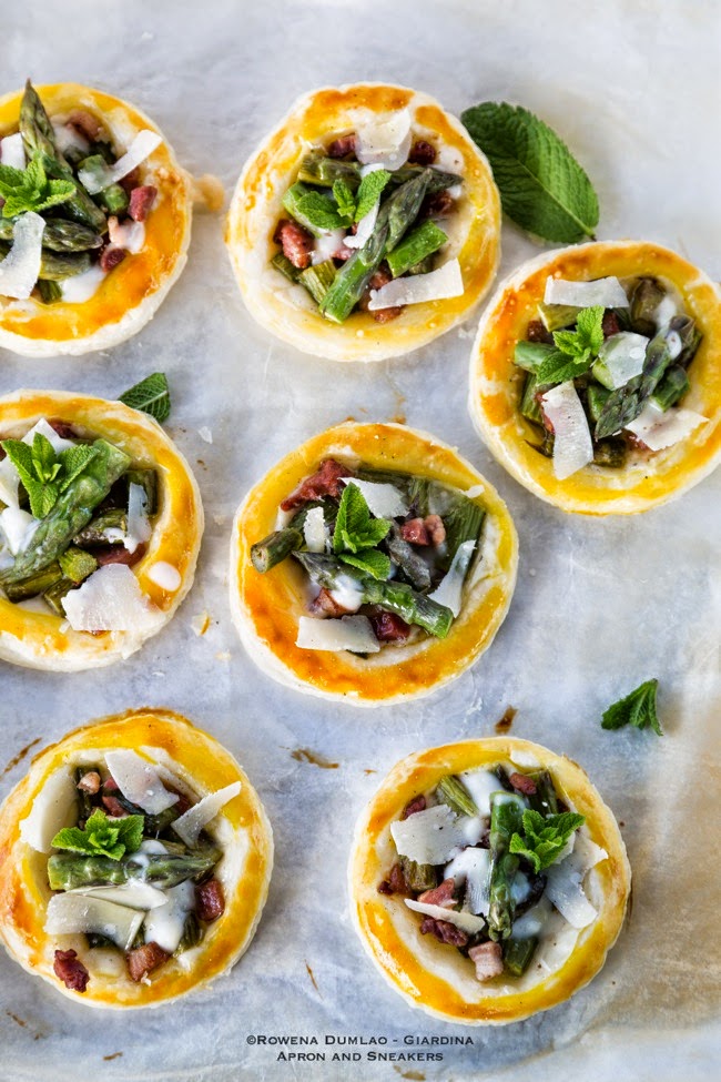 Mini Puff Pastry Tarts with Asparagus, Pancetta and Cream of Parmesan