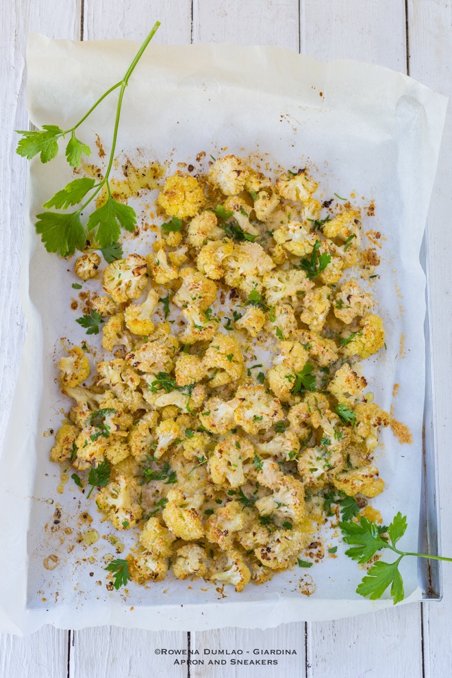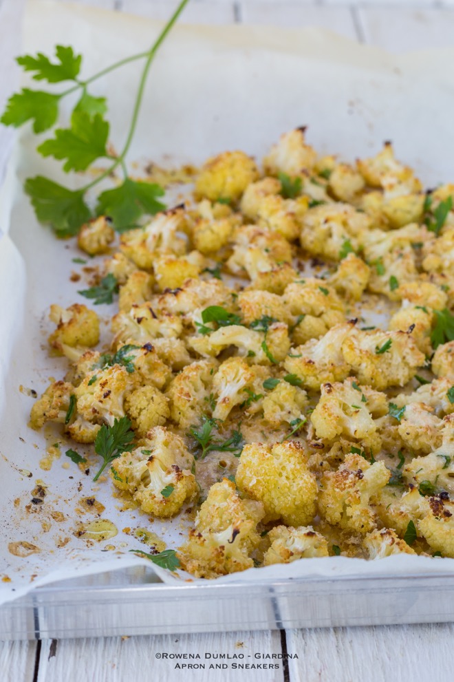 I have to be honest, cauliflower is one of my least favorite vegetables. There are only three cauliflower dishes that I can really enjoy and this Easy Roasted Cauliflower is the fourth one. Mentioning the other three recipes, I think I should share them with you. I suggest that you try them because they are worth your time and effort. Pasta with Cauliflower and Raisins is a traditional Sicilian dish that my mother-in-law taught me, Slow Cooker Broccoli and Cauliflower Casserole is a simple and healthy vegetarian dish that you can pop in your slow cooker anytime and lastly, the Roasted Cauliflower Soup which is one of the 3 detox soups that are great to have on the days you want to go light.