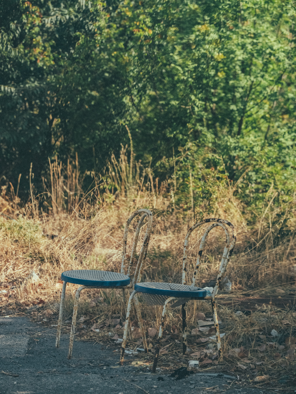 Powoli wędruję do takich miejsc – cichych, trochę zapomnianych, zupełnie nieturystycznych. Uwielbiam fotografować samotne krzesełka w upalne popołudnie. Ktoś pewnie usiądzie na nich wieczorem, ktoś zagra w balote, teraz wszyscy pochowani w domach, za okiennicami, z wentylatorem. Jeżeli w ogóle tam są.