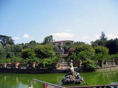I Giardini, dietro Palazzo Pitti, sede dapprima dei Medici, poi dei Lorena e dei Savoia, furono costruiti tra il XV e il XIX secolo e occupano un'area di circa 45.000 metri quadri. Alla prima impostazione di stile rinascimentale, visibile nel nucleo più vicino al palazzo, si aggiunsero negli anni nuove porzioni con differenti impostazioni: lungo l'asse parallelo al palazzo nacquero viali ricoperti di ghiaia, nuovi laghnetti e fontane, ninfei, tempietti e grotte. Notevole è l'importanza che nel giardino assumono statue e parti fabbricate, come la settecentesca Kaffeehaus (raro esempio di gusto rococo), che permettevano di godere del panorama sulla città che il giardino offre, difformemente al gusto dell'epoca della costruzione.