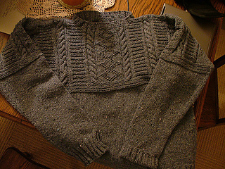 Pattern description from Interweave Knits, Winter 2004: “For some knitters, knitting a sweater without step-by-step instructions is intimidating; for others, follow instructions is tedious. Knitting in the Old Way by Priscilla Gibson-Roberts and Deb Robson (2004, Nomad Press) is for knitters who fall somewhere in between. Taking the book’s approach - enough information for the basis of dozens of sweaters, but the freedom to choose yarn, gauge, fiished size, and stitch or color pattern - Ann Budd designed the classic pullover. See page 88 for details on how she translated an illustration in the book to the sweater shown here.”