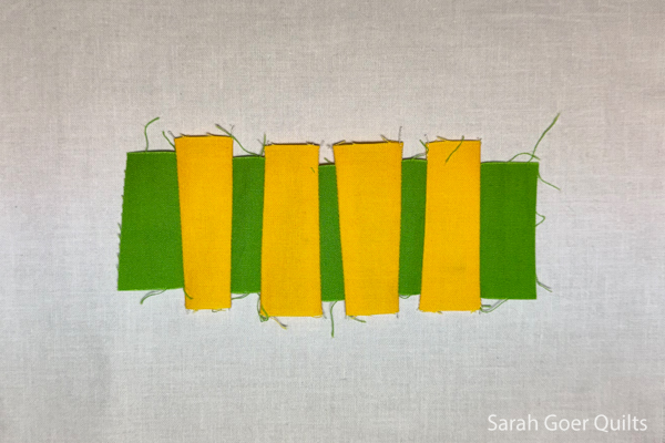 Based on the classic precision pieced snake blocks, Sarah Ruiz asked us for improv snake blocks.