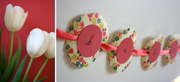I recently threw a shower for my friend, Marin, and just in the nick of time too...she gave birth two and a half weeks early! The inspiration for the color theme was a pretty Japonese chiyogami paper I bought in San Francisco's Japantown two years ago. I've been saving for the right occasion, and this was it!