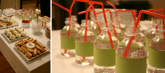 Decorations for Marin's shower were simple...white tulips...a garland across the fireplace...and mini-pom-poms hanging over the table. Less is usually more, right? When it comes to games I am always torn. I like the idea of a little mixer, but it can be challenging to find a game that isn't silly. I loved Brooke's idea of a little questionaire, so I went with it and loved it. I'll definitely add that to my list of shower "musts". One last note on details...with all of us holding identical water bottles, I wanted to make sure there was a way to keep track of our drinks. I decided to make each guest a little nametag to wrap around the neck of her water bottle. It worked...no mix ups!