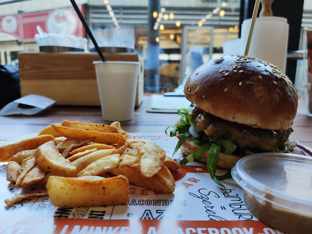 Acabats d'arribar amb tren des de Praga, teníem gana ja que ens havíem llevat molt d'hora i a penes vam poder esmorzar, vam anar a dinar a un lloc que havíem estat buscant i on deien que feien les millors hamburgueses de Budapest al Bamba Marha Burger.