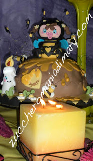 La cosa che credo sia stata più apprezzata del corso (oltre ai dolcetti che ci siamo pappati!!!!!) è stato che non ho voluto improntarlo sul fatto che la loro torta dovesse essere uguale alla mia, bensì sul fatto che dovessero trarre spunto dalle mia torta per poi decorare la loro secondo il proprio gusto personale. Risultato: sette torte tutte diverse l'una dall'altra, collegate solo dal filo conduttore del tema Halloween, sette torte personali e uniche come le mie pasticcine cake designer che le hanno fatto!!!!!