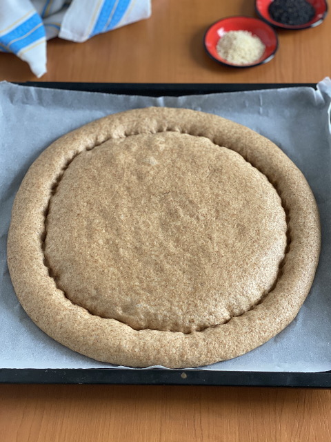 A sütőből kivéve, pár percig pihentetjük a formában, majd egy éles, vékony pengéjű késsel óvatosan körbevágjuk, levesszük a forma karimáját, majd a sütőpapírral együtt rácsra helyezzük és teljesen kihűtjük.