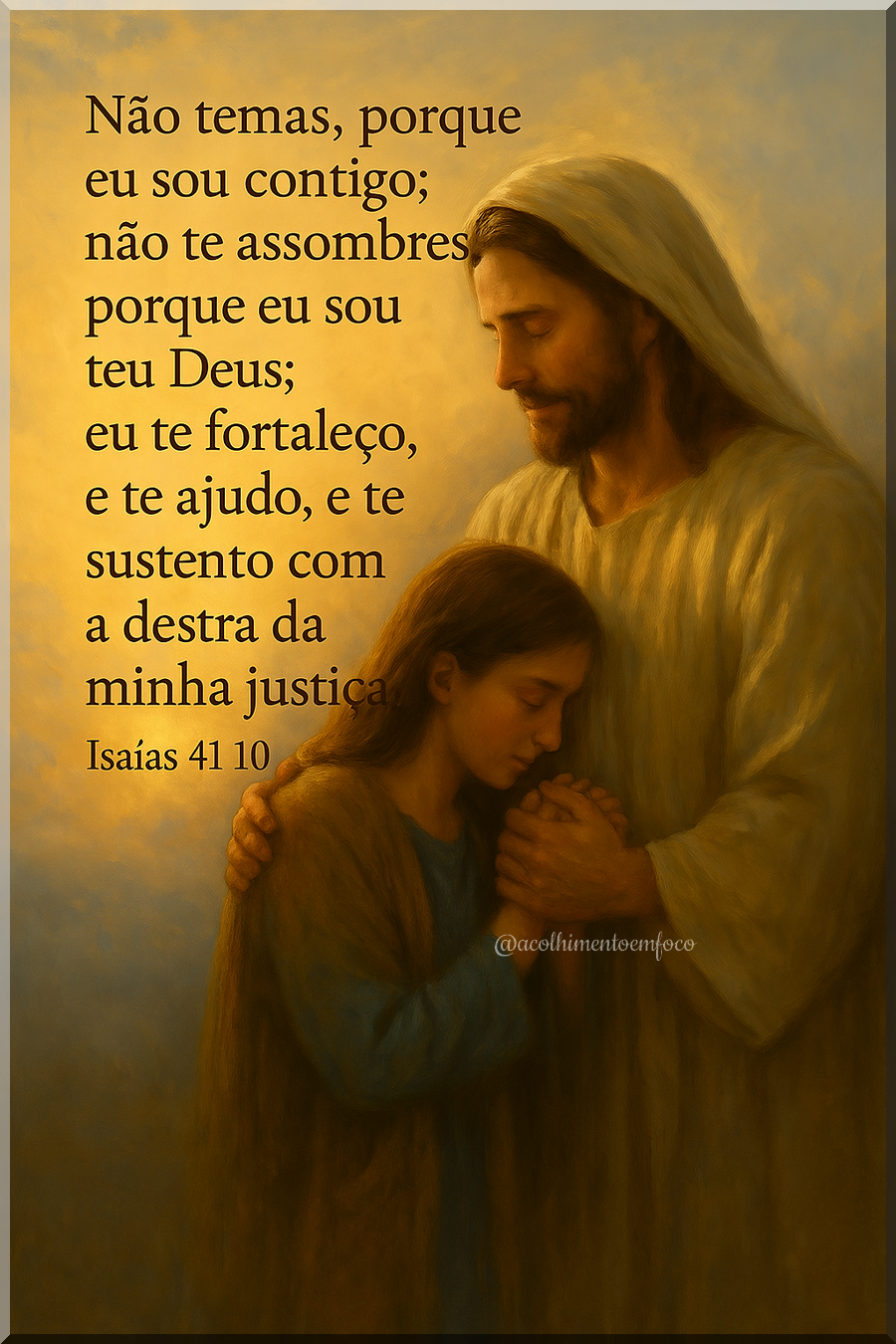 “Não temas, porque eu sou contigo; não te assombres, porque eu sou teu Deus; eu te fortaleço, e te ajudo, e te sustento com a destra da minha justiça.”