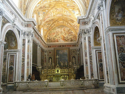 Appiedati,e inquadrati,in fila per due col resto... niente resto,ci eravamo tutti,la guida in testa,visitiamo la Chiesa del Gesù,la Chiesa e il monastero di Santa Chiara ed un tratto di Spaccanapoli,non siamo arrivati a San Gregorio Armeno,la strada delle botteghe dei presepi,perchè un accogliente bar con i suoi tavoli all'esterno e la prospettiva di un buon gelato hanno avuto la meglio e fiaccato il nostro desiderio di andare oltre.