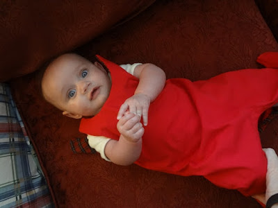 ...I got out a couple of Our Airman's saved baby things...a little onesie...and the little sleeper on the right is his actual 'going home' outfit...because I wanted to check the size a little bit...as the pattern seemed a little bit long and skinny to me...but you can see that the length (shoulder to crotch) is fine...but the 'bottom' (or diapered) area needed to be a little bit larger...