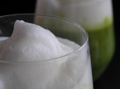 Medvehagymás borsó krémleves, tejhabbal és kecskesajttal