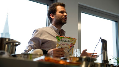 A bemutatón Fördős Zé a hétköznapi egyszerűségen némileg túlmutató változatokat készített. Minden esetre mind a két alkotás: a Karfiol-krémleves sült fokhagymával, ropogós malac pörccel és garnélával, illetve chilis sütőtök-krémleves tépett csirkével és tökéletes fürjtojással is lenyűgözően finom volt.