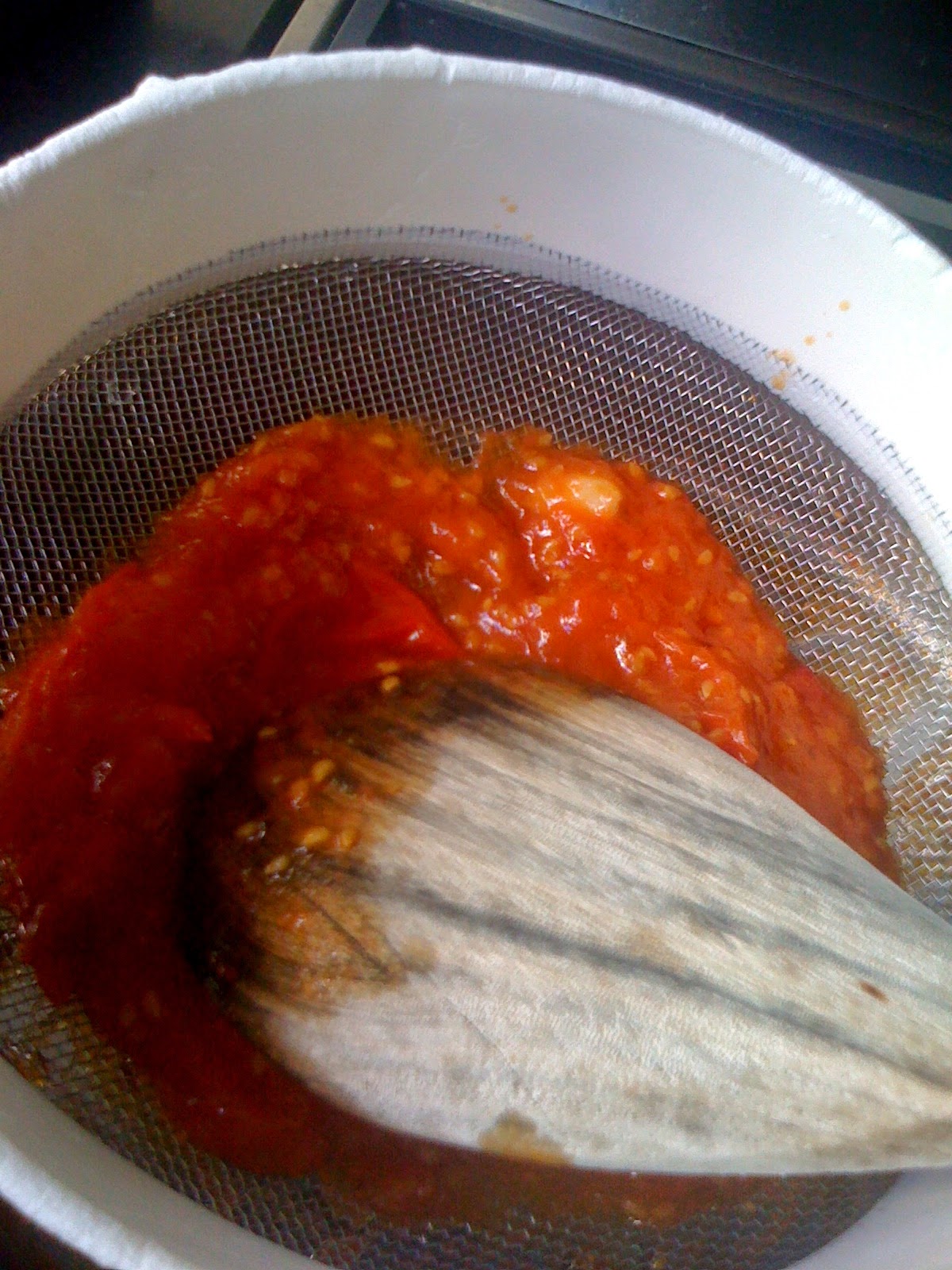 After the arrabbiata post I was asked what I mean by 'putting' the tomatoes through a sieve.