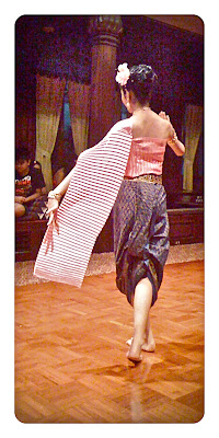 After dinner the dancers came out, and they entertained us for an hour or so. It was a good evening, I loved the settings, the triangular cushions and low tables, the food (minus sweets) and entertainment, and I guess that if you have only a few nights here, a formal Thai dinner with music and dance, even as touristic as it may sounds, should not be missed!
