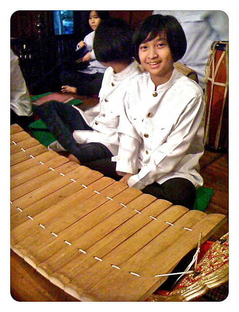 Sala Thai (the Thai house restaurant) for a traditional dinner and dance. The setting, food, music and costumes were all a joy and an experience for the kids, who had never been here before, and thus enjoyed a first taste of Thai style! An hour prior to dinner I requested a vegetarian meal for us, and they obliged happily.