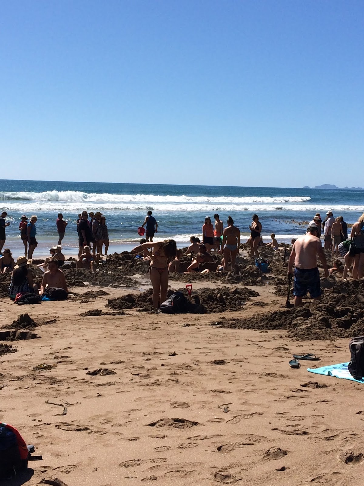 A bassa marea si scavano buchi nella sabbia che si riempono con acqua termale (molto calda, attenzione!). Questa la rende anche una delle spiagge più affollate della Nuova Zelanda, ma l'esperienza è unica, e molto divertente!