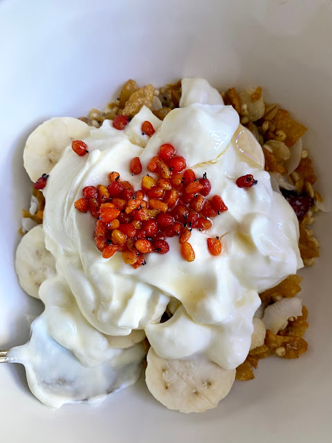 here, (Noodles with banana flowers and a step by step banana blossom and potato salad), and yesterday I finally picked this year blossom and decided on an aromatic salad with fresh coconut flesh and tofu.