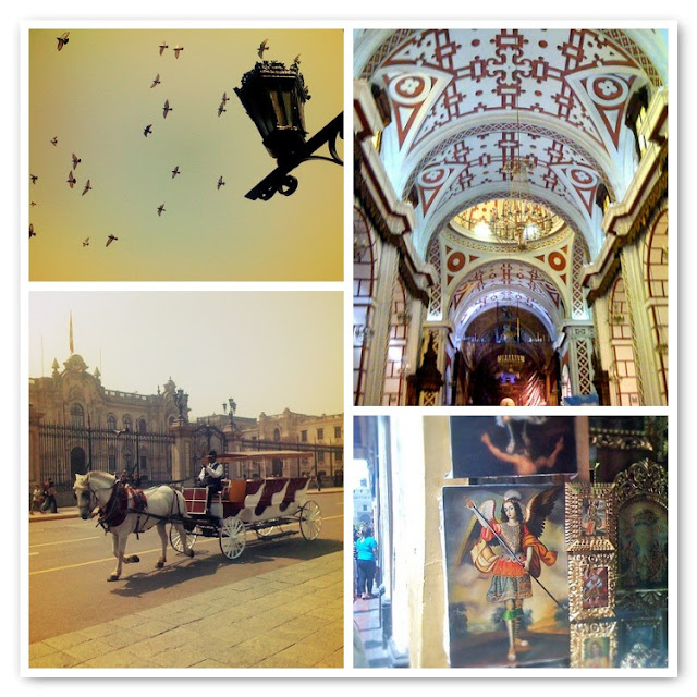 I was also impressed with the Archbishop’s Palace in the Plaza Mayor (bottom right in the photo collage above), designed by the Polish Peruvian architect Ricardo de Jaxa Malachowski. This and other stone and marble building have incredible wooden balconies attached, quite a contrast. But the best surprise in the square is the fountain. We took a tour of the central city with a guide and she told us that on July 28 (Peru Independence Day) instead of water the fountain has Pisco! No rain and Pisco from fountains?