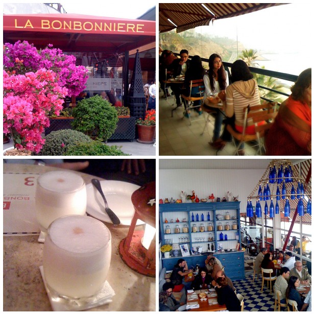 And talking about treats: I have to tell you that Peru surprised me with its cuisine. I was told that it was good, but it even exceeded my expectations: definitely the best of all the countries I have visited in South America. We ate well in Cusco, and we ate well in Lima. Our friends took us to La Bonbonniere, one of the many cafe/restaurants that are based in Larcomar, Miraflores' fancy terraced shopping centre with great ocean views. It was too dark to take photos of the food, but I had to include the Pisco Sour photo, the obligatory drink if you visit Peru.
