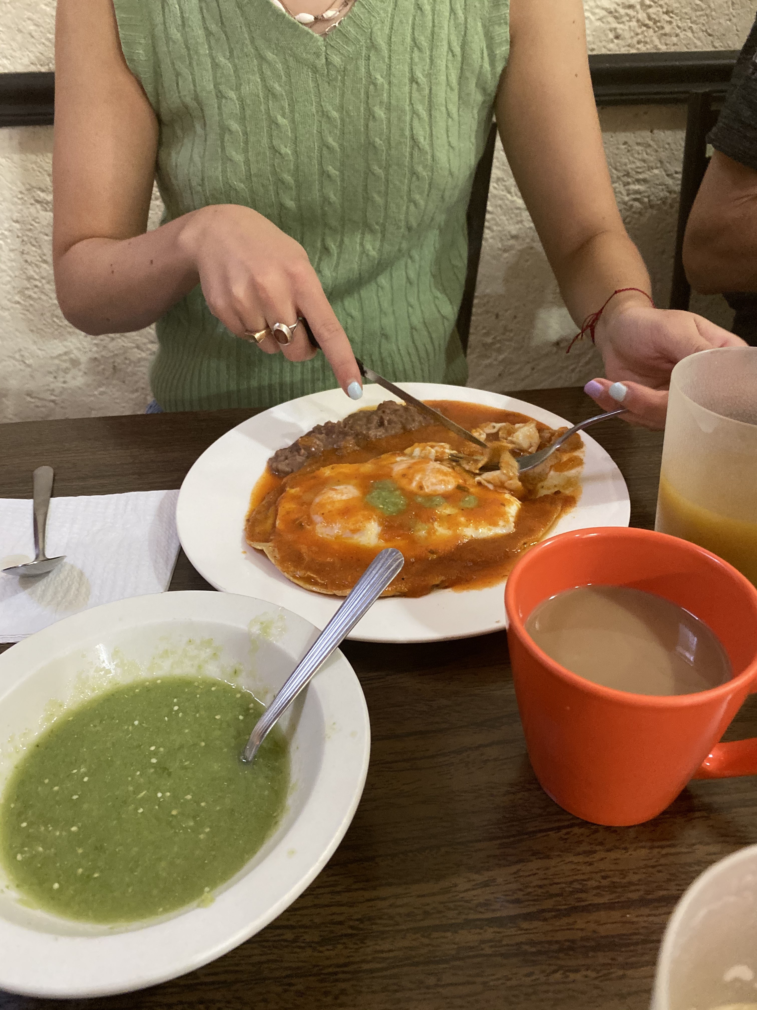 Mexican food is amazing, from street stalls to fancy restaurants, and even the 'tourist' places provide a good fare. Plus there is plenty for vegetarians. But let's start with simple cafes, this is a typical breakfast in Mexico City: eggs on a tortilla, with spicy sauces (although most of the time I just had coffee with pastries, I am Italian after all).