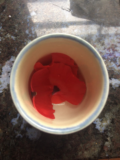 This should be with tagliatelle really, but I didn't have tagliatelle and I was home eating alone, so I didn't feel like making some either. And so I used spaghetti, which is strange for me as I never have spaghetti with butter. But it was quick and delicious, and the poppies in the garden were calling me... I have planted a few (from seeds) in different post all around the house to have splashes of red, but petals don't last long, and I didn't want to raid all the poppy flowers in the garden for a full family meal. Next year though I will plant many more, to eat both the spring leaves and the flowers.