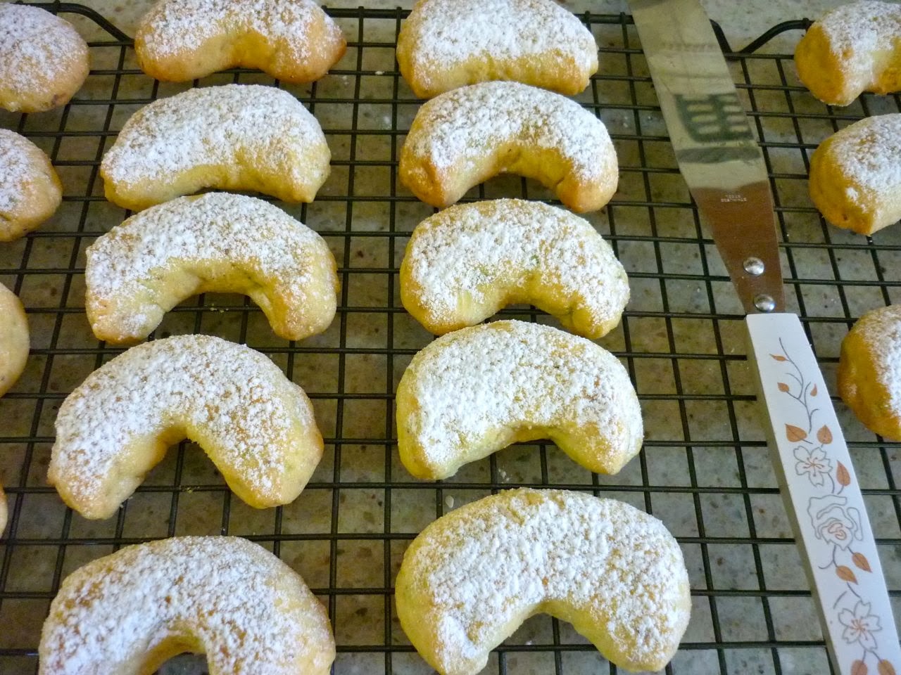 And what about these melt-in-the mouth gorgeous Orange blossom & pistachio shortbread crescents from Lesley at eat, etc…. Lesley says that they could easily be her favourite biscuits with their "oh-so-delicate flavour and texture and crunchy bites of nuttiness", and I believe every word of it: they sound truly delicious.
