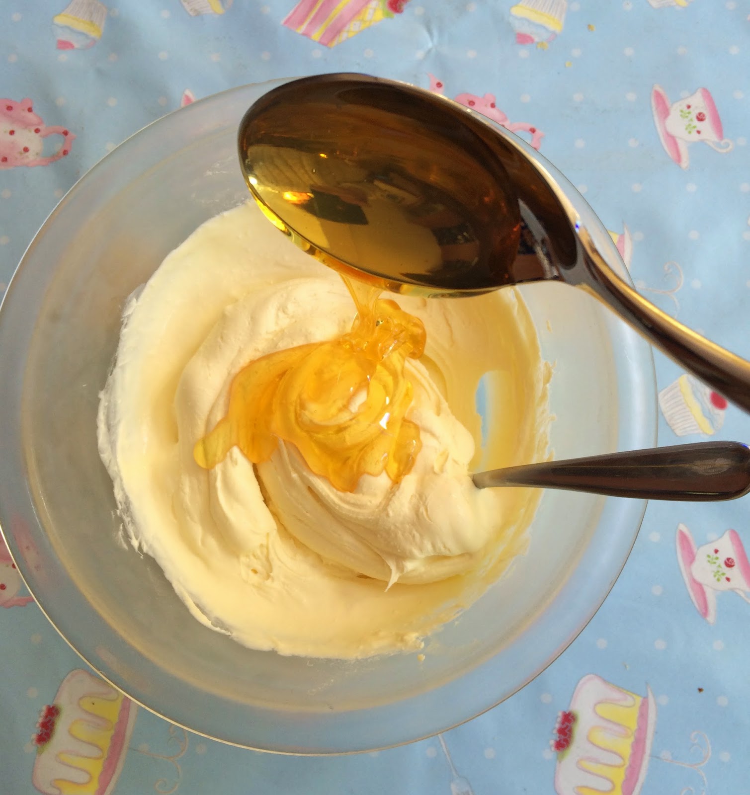 For the mascarpone recipe just click here, it is easier that you may think! When the mascarpone is ready just add a tbsp of honey (I used Tawari) and fold. Divide the mascarpone into 4 cups and it is ready to be eaten or topped with what you fancy.