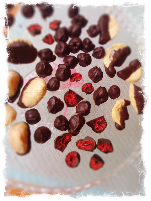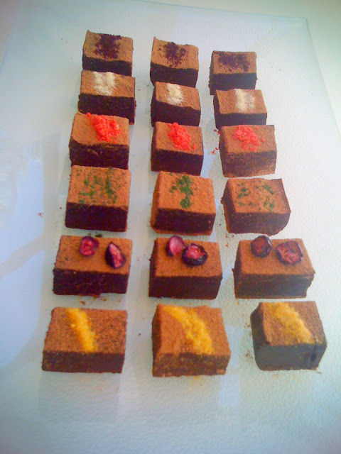 I have to say that they looked and tasted so professional that I will make them again. At home we are real intense chocolate lovers, so these nama choco went down a treat (when I told the kids that I made nama choco they said "YESSSS!"), then I tried them on my Italian language students, and they liked them too, so I thought of putting the recipe on the blog :-). The fruit powders works well not only for colour, but to offer a fresh fruity note to the intense and creamy chocolates. These should be stored in the fridge, but take them out 20 minutes before serving them, unless it is a hot day, or you are one of those people who like chocolate straight from the fridge (and that I can never understand!).