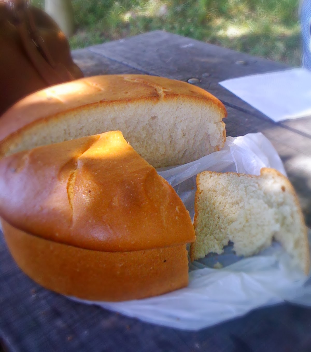 After crossing Te Urewera we spent a night in Wairoa and in the morning we went to a bakery to get some bread for the trip to Hawke's Bay. Well, we don't see this Maori bread (also called Rewena bread) often in bakeries where I live (West-Central Auckland), so we bought some and it was soft and sweet, almost like a cake. Courious Kai has a recipe
