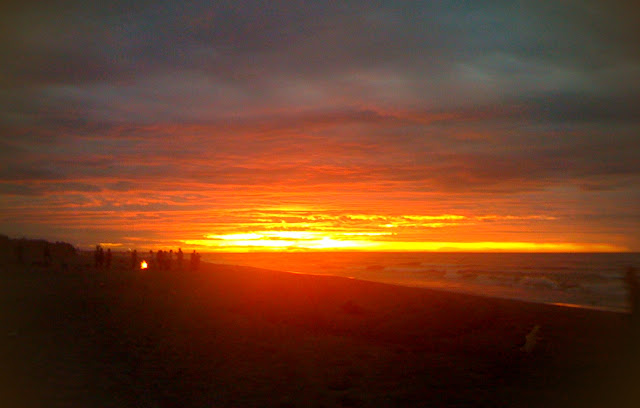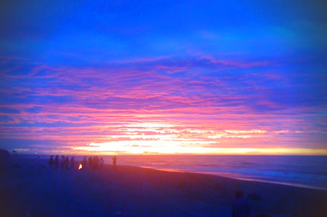 Hokitika on the West Coast, and what a sunset they have!! Everything was pink, then purple, then red-orange, then black! There was even a fire on the beach, to make it all the more charming. After dark we went to see the glow worms in a dell nearby, but I didn't want to take photos for fear of disturbing the little creatures!