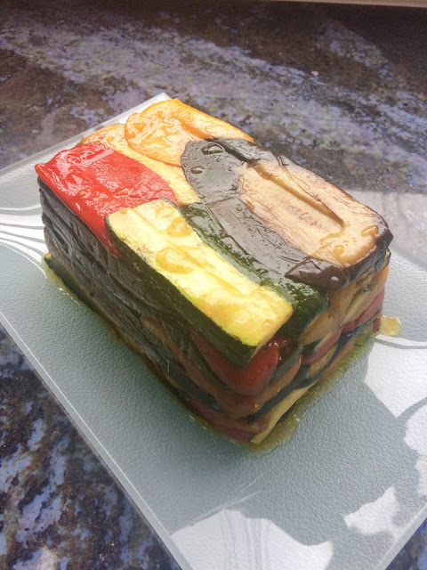 Like this one for example, which I first published on this blog 10 years ago with the name of Torta di Verdure in Scapece. Scapece is an Italian way of 'marinating' food, (like escabece in Spanish) but I know that this torta/terrine is my own. I shared it with an Italian food forum and went down very well (as well as it goes down at the table) and I made it many more times since so it is truly tasted. Then a few days ago a took a photo and decided that since it is such an amazing vegan recipe I should share on Insta and with an English name, terrine of vegetables ‘in scapece’.