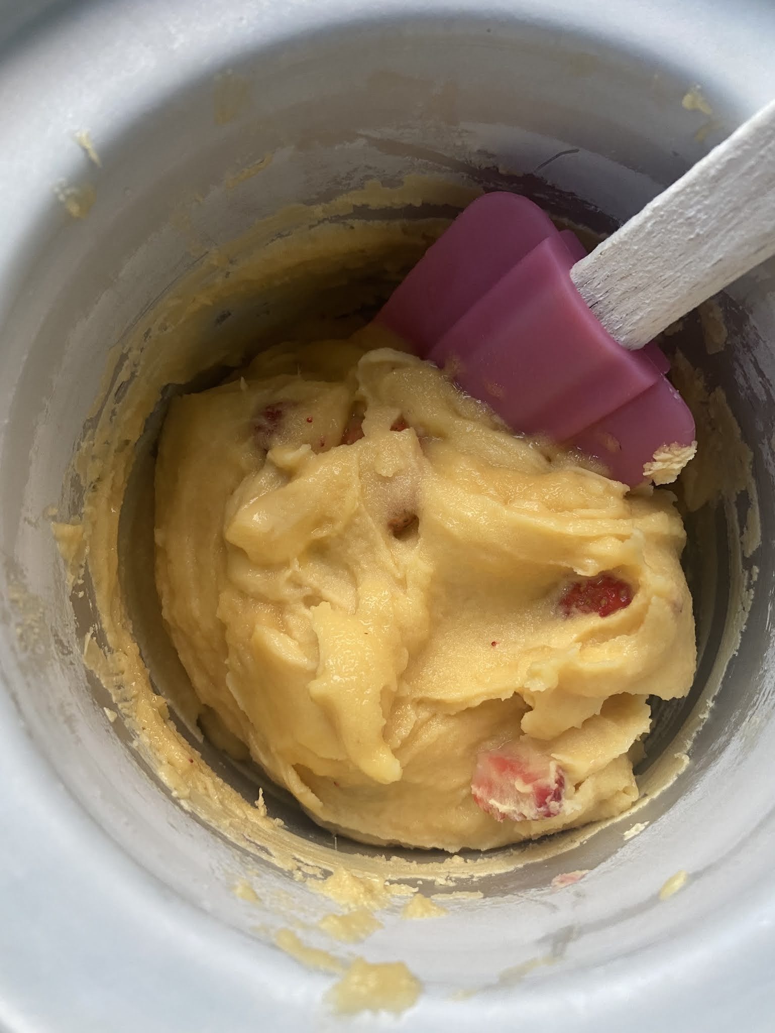 Cut the blossom and discard all the pink leaves and little flowers (they can be eaten too if you like, but the blossom is my favourite part).