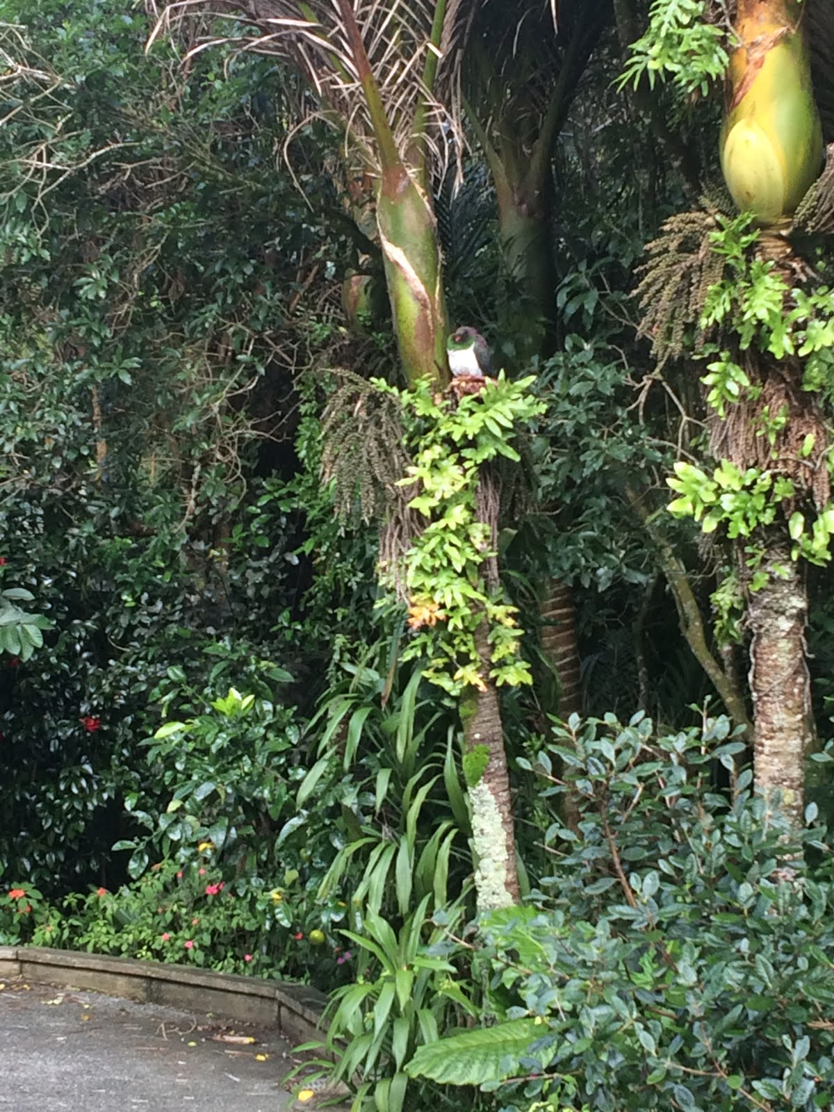 A Kereru! The New Zealand native wood pigeon, all puffed up and using her chest for a pillow.