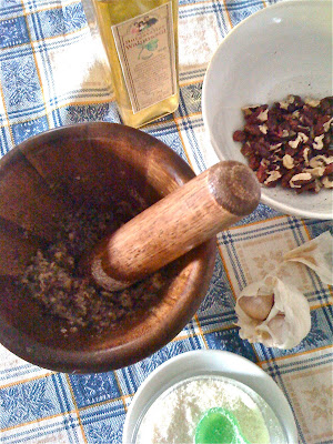 Add the ricotta dumplings into the simmering sauce and stir gently, until the balls are well coated and simmer for 5 more minutes. Top with chopped parsley and walnut halves. Serve hot, with plenty of sauce.
