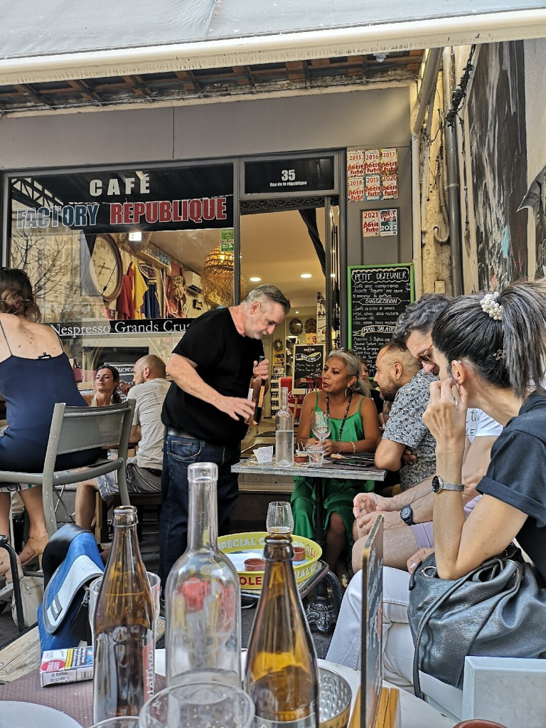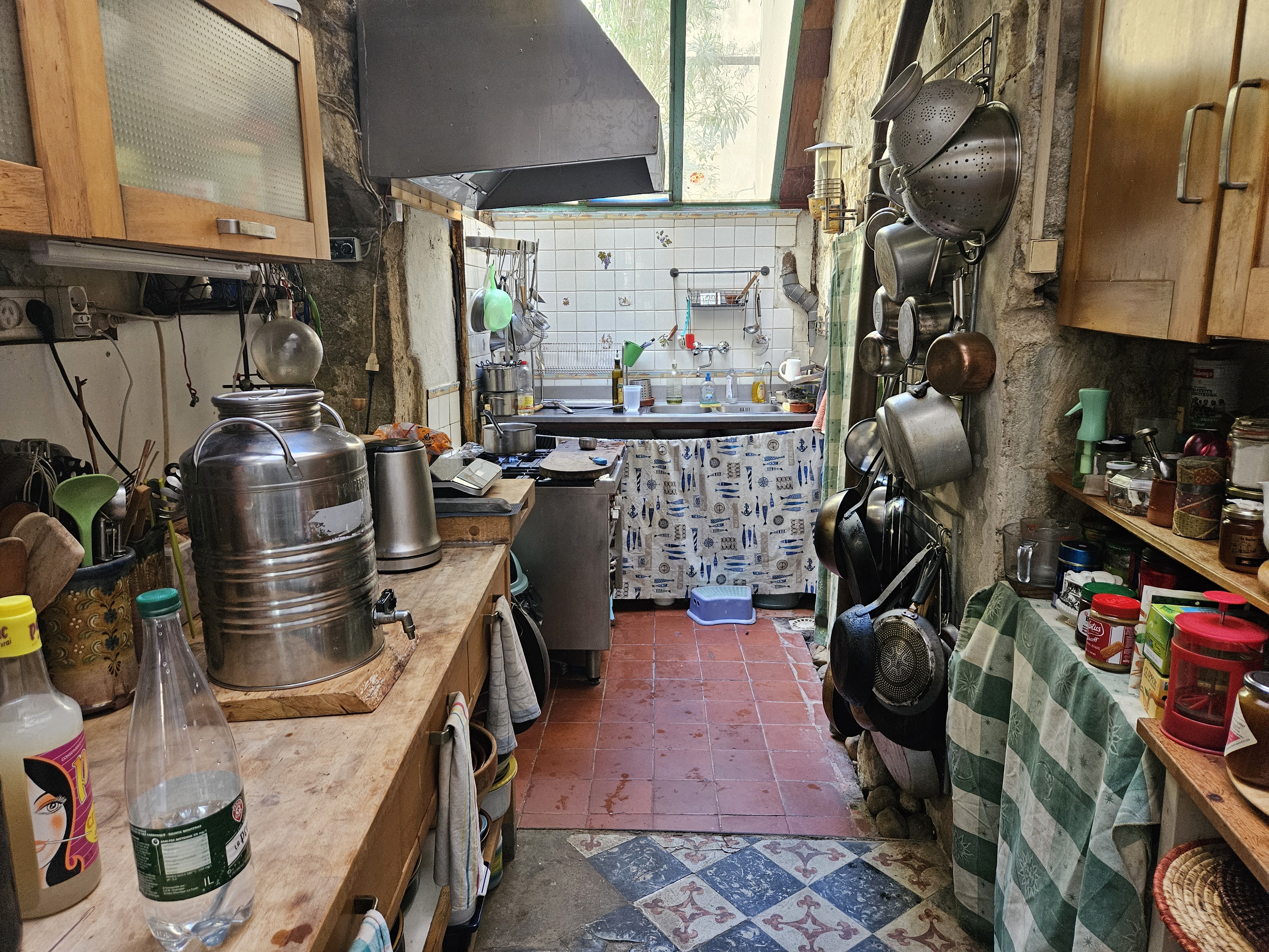 On the way we pass a steep stairway leading upward. Signs let us know that there is a restaurant above, probably with a fine view of the canal and the river beyond. We resist the temptation.
