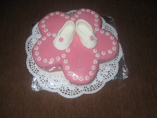 És íme a torta , amire a babacipőket készítettem. Babalátógatóba vitték, és valami csajosat kértek. Ilyen lett. Sütöttem hozzá 4 tojásos vizes piskótát , oroszkrémmel töltöttem.