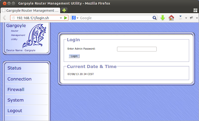 http://192.168.1.1 Login: Admin Password: AdminA partir d'aquí, anem al menú System Tools -> Firmware Upgrade i seleccionem el firmware descarregat. En el meu cas, actualment Gargoyle 1.5.9 (inicialment 1.4.7).