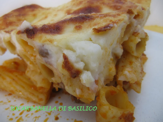 maccheroni, coprite con il sugo e la besciamella. Infornate a 180°