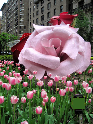 LOVE the art exhibits they place on the medians. Rock on NYC! Can't wait to see these for myself next month, but with the tulips in bloom it is heaven.