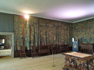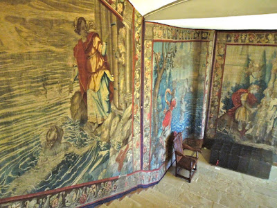 Naturally they are all surrounded with tapestries as well -the blue room seen above. Here they were actually useful in trying to keep out drafts.