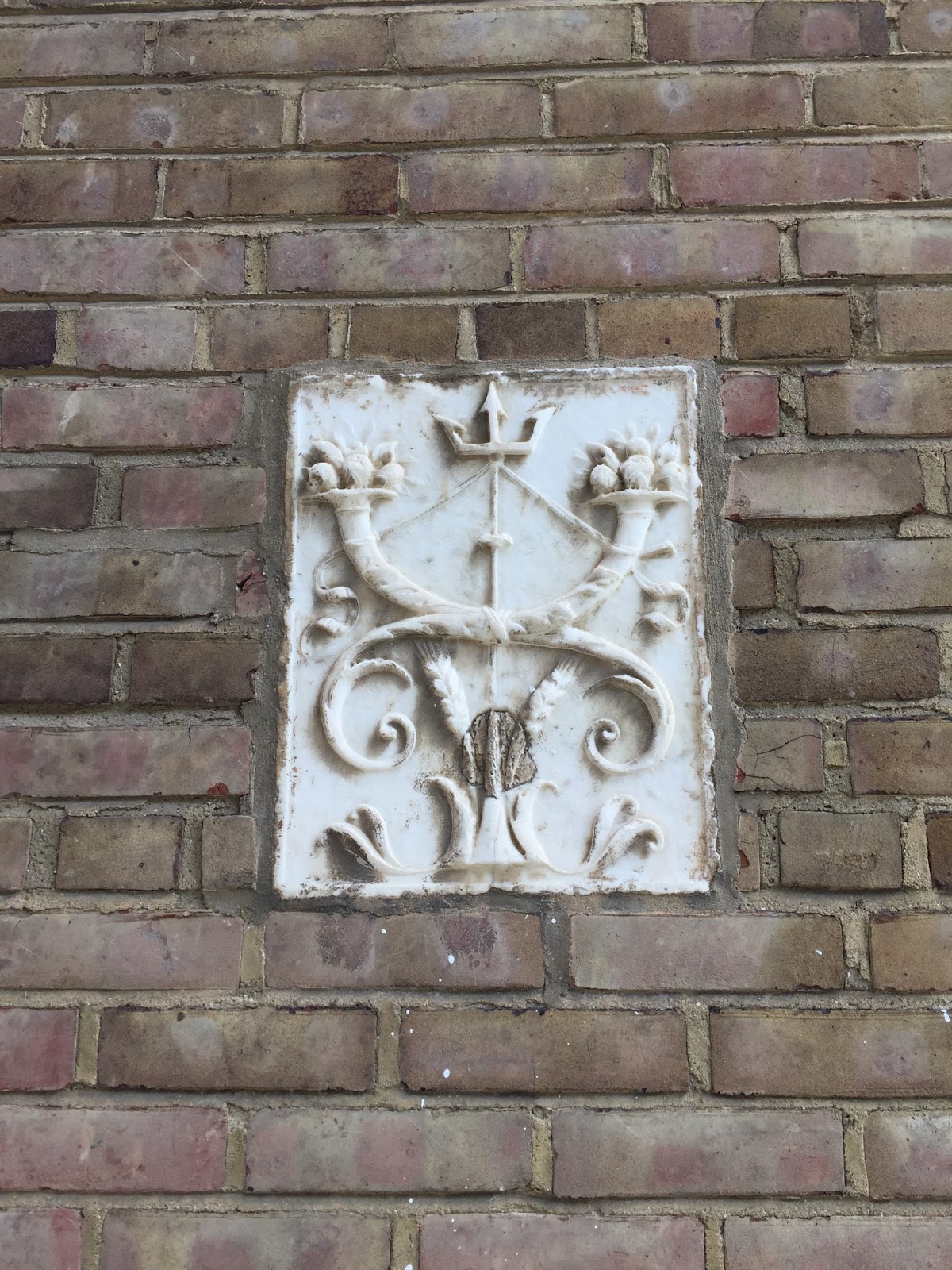 Fragments of antique sculpture are embedded into the brickwork on the older buildings.