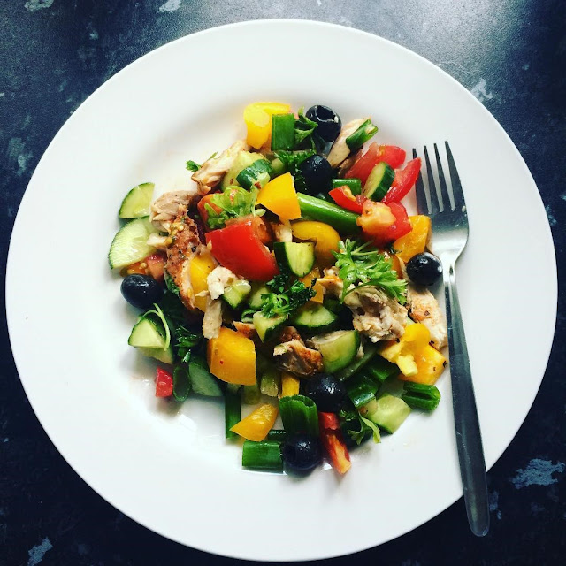 W Wielkiej Brytanii zaczely sie dlugo wyczekiwane wakacje! Mimo ze pogoda nas nie rozpieszcza, bo od kilku dni pada deszcz, wieje wiatr, i temperatury nie przekraczaja 20 stopni, to bezmiennie pozostajemy aktywni i wykorzystujemy czas wakacyjny. Planow na te kilka zblizajacych sie tygodni nam nie brakuje i sa one zwiazane one nie tylko z podrozami, ale i z bieganiem, i z wycieczkami rowerowymi. W tym roku tez po raz pierwszy od wielu lat wybieramy sie pod namiot do przepieknej Kornwalii, na co tez czekam z niecierpliwoscia. A dzisiaj kilka prostych przepisow na smaczne, kolorowe salatki. Zachecam do wyprobowania!