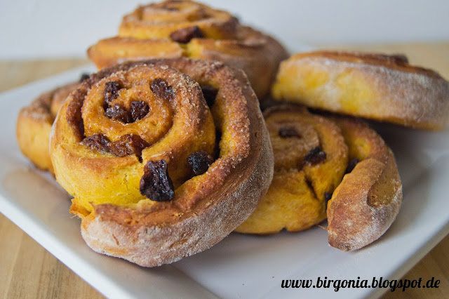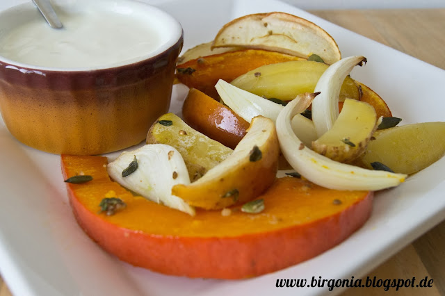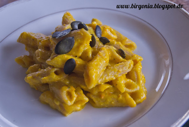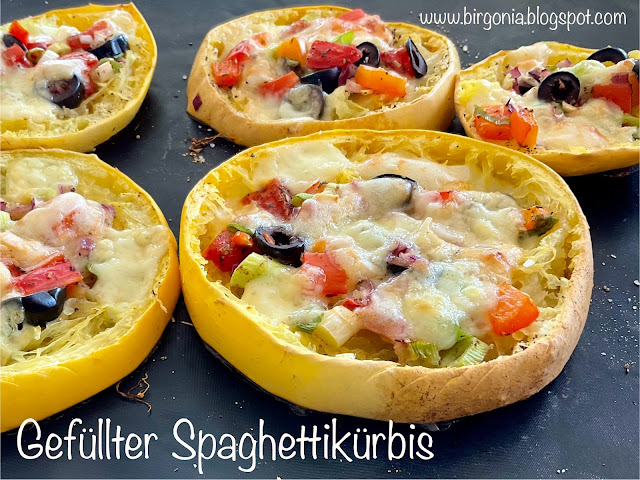 Ich hatte von einer Freundin einen Spaghettikürbis geschenkt bekommen und im Hinterkopf war da noch dieses Rezept, bei dem der Kürbis nicht längs halbiert, sondern in Scheiben geschnitten wird. Das Rezept habe ich rasch wiedergefunden und so stand dem neuen Küchenexperiment nichts mehr im Weg.