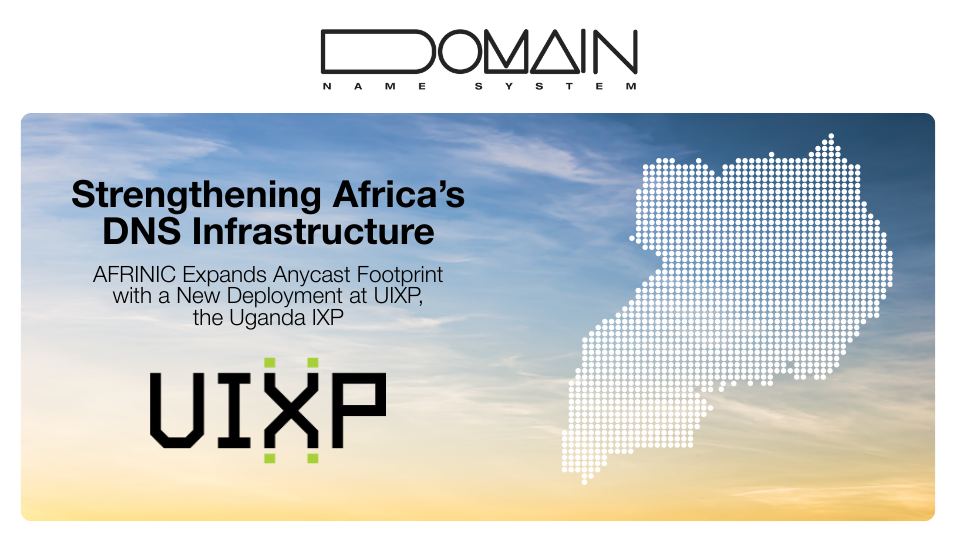 Advancing DNS Resilience Through the AFRINIC DNS Programme The AFRINIC DNS Programme is a long-term initiative designed to enhance Internet stability, improve DNS performance, and expand critical technical infrastructure across Africa and the globe. Through its operational and policy framework, AFRINIC supports authoritative DNS hosting for African country-code top-level domains (ccTLDs), reverse DNS (in-addr.arpa) zones, deployment of copy or Root servers, and a globally distributed anycast network that ensures resilient and secure DNS services. AFRINIC's infrastructure includes secondary nameservers for the reverse delegation zones specified in RFC 5855 (IN-ADDR.ARPA and IP6.ARPA), enhancing the robustness and reliability of global reverse DNS services. Major Milestone: Anycast DNS Node Successfully Deployed at Uganda IXP Advancing DNS Resilience Through the AFRINIC DNS Programme AFRINIC is pleased to announce the successful deployment of a new two Anycast DNS nodes at the Uganda Internet Exchange Point (U-IXP).