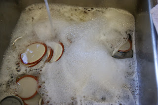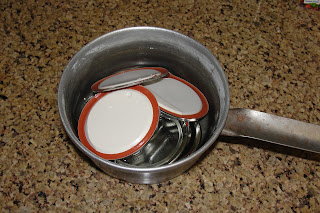 The picture at your right shows my heating tool's when canning. I have a small stainless steel pot that I use to heat the lid's. You do not want to warm them in boiling water because the rubber will not seal correctly.